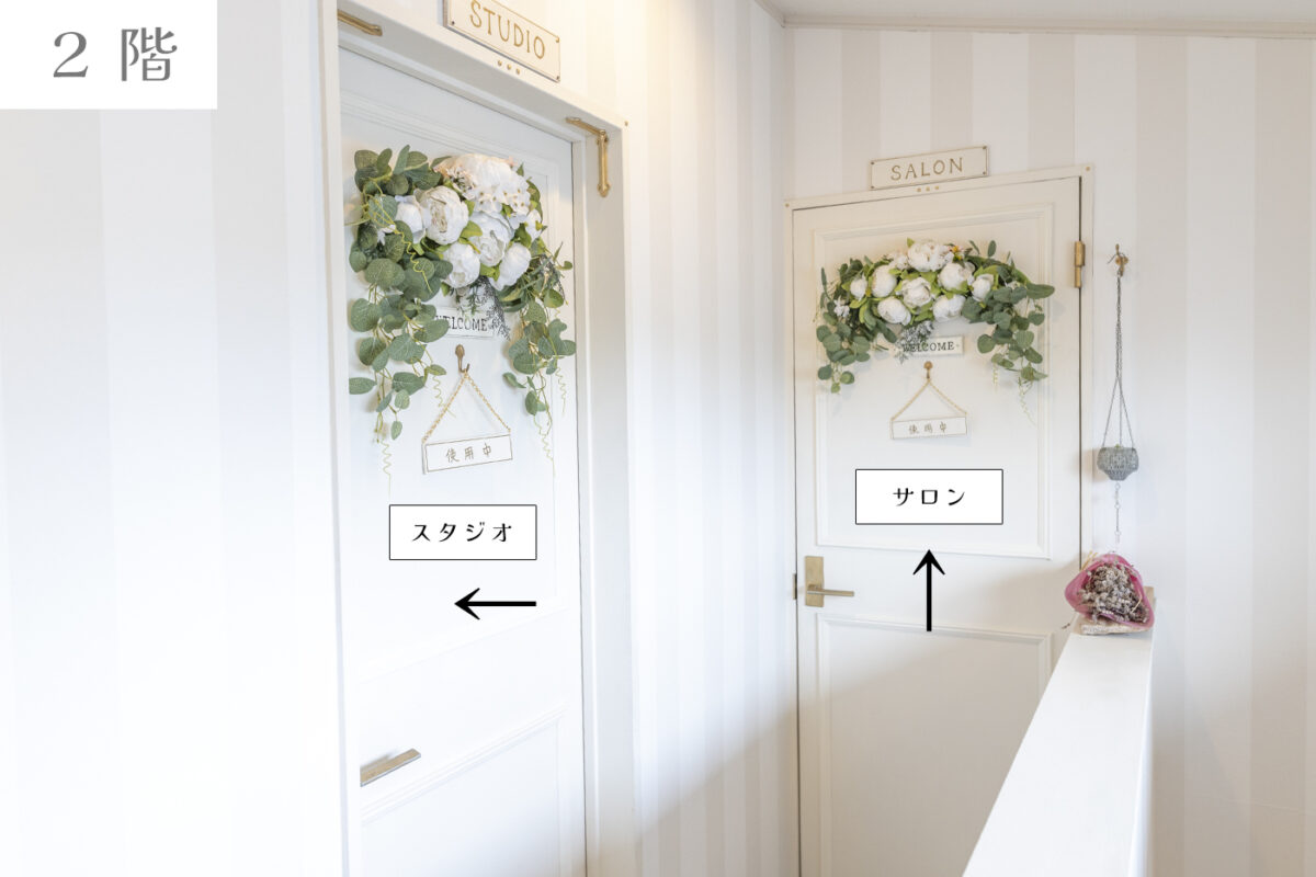 スタジオ:階段を登って「左手」のお部屋。ドアに”STUDIO” の表記があります。